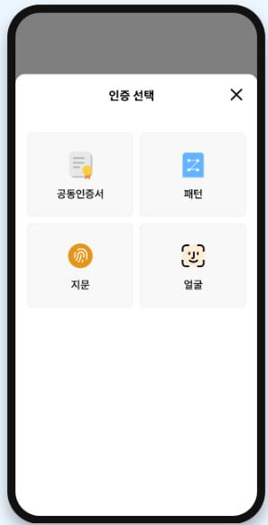4. 전자서명을 위한 인증 수단을 선택합니다. 기본인증방식을 설정해 놓으면 인증 선택 없이 바로 인증을 진행할 수 있습니다. 5. 가입상품 목록에서 전송받을 가입상품을 선택한뒤 '다음'버튼을 선택합니다. 신용정보 주체 권리보호 관련 항목이 포함된 상품을 선택하면 하단에 해당 항목 제공에 동의가 필요합니다. 6. 가입상품 상세정보를 요구하기 위한 상세정보 정송요구서를 읽고 종료시점과 조회기간을 선택한뒤 '다음' 버튼을 선택합니다.